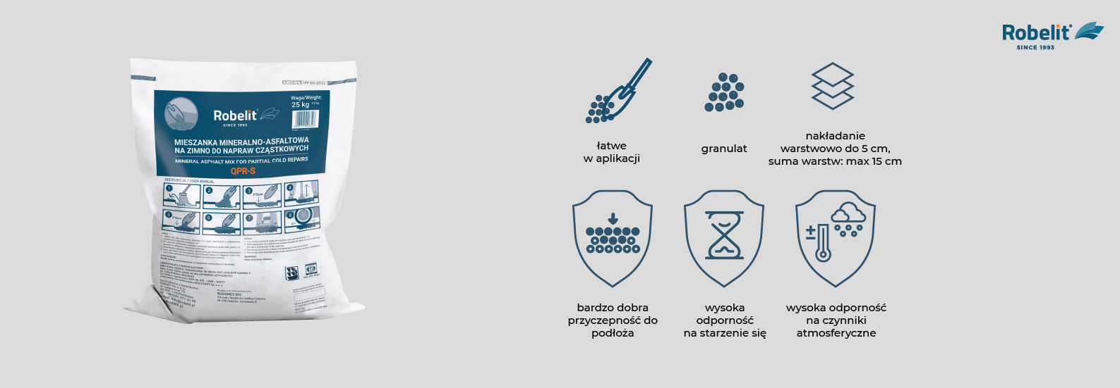Jest to gotowy produkt w workach 25 kg, idealny do cząstkowych napraw nawierzchni asfaltowych, takich jak wypełnianie ubytków, wyrównywanie połączeń czy naprawy dróg, parkingów i podjazdów. Można go stosować bez użycia specjalistycznych narzędzi czy ciężkiego sprzętu. Asfalt na zimno jest łatwy w aplikacji i umożliwia szybkie wykonanie prac naprawczych nawet w niskich temperaturach. Do jego użycia nie są wymagane specjalistyczne narzędzia czy ciężki sprzęt. Podłoże nadaje się do użytkowania bezpośrednio po zakończeniu prac. Nakłada się go warstwami nie przekraczającymi 5 cm, wymaga zagęszczenia. Przy większych ubytkach należy wypełniać je kolejnymi warstwami po wcześniejszym zagęszczeniu warstw poprzednich. Maksymalna całkowita grubość warstw mieszanki nie może przekraczać 15 cm.