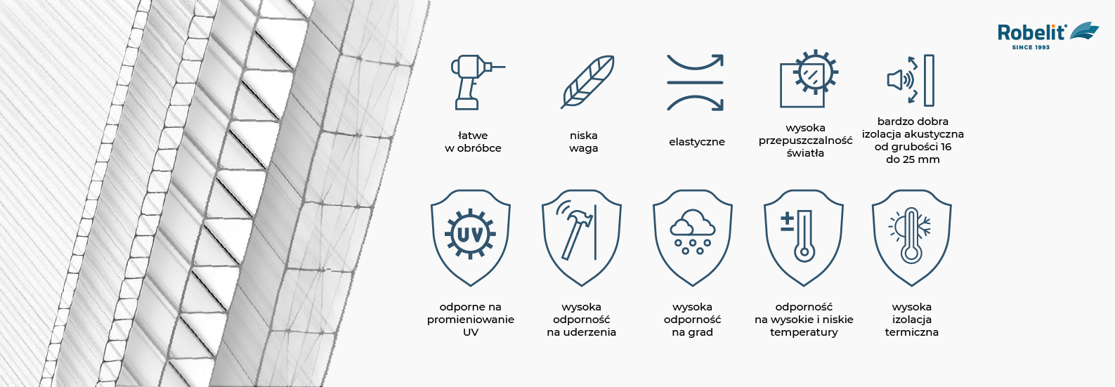 Robelit to zaufana marka oferująca wysokiej jakości płyty poliwęglanowe bezbarwne i mleczne. Wyróżniają się doskonałymi właściwościami użytkowymi oraz parametrami użytkowymi. Dostawa jest realizowana w wyznaczonym czasie, za to informacja o wysyłce znajduje się zawsze w opisie konkretnego produktu. Gwarantujemy sprawną obsługę, korzystne ceny, oraz niezawodny, sprawdzony asortyment prosto od polecanego producenta.